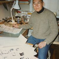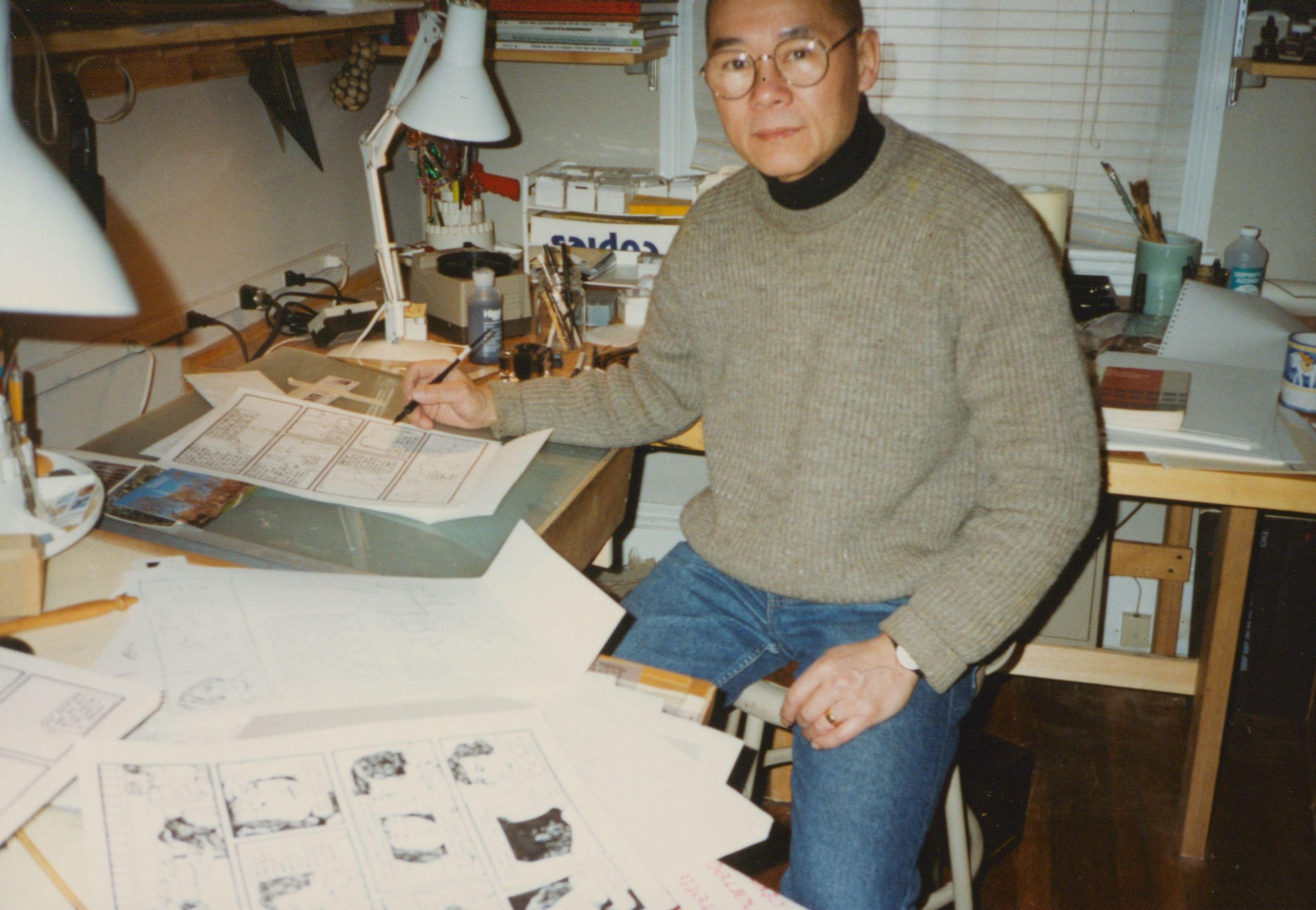 Photograph of Wen-Ti Tsen Working on The Asian American Comic Book