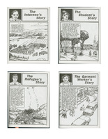 Asian American Comic Book A comic book produced by the Asian American Resource Workshop that tells the story of 4 different Asians living in Boston, MA. The first story is told in the perspective of a man who experienced the Japanese internment camps. The second story is in the perspective of an Indian student studying in college. The third story is from the perspective of a Cambodian refugee and the last story is told from the perspective of a Chinese woman who worked at a garment factory.
