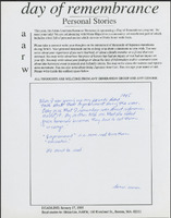 Asian American Resource Workshop Day of Remembrance 1995 Personal Stories The AARW Day of Remembrance statements from January 1995 reveal how the trauma of Japanese American incarceration continued to shape Asian American identity, political consciousness, and community memory decades after World War II. These sources show that Executive Order 9066 was not only a historical injustice that uprooted more than 120,000 people of Japanese ancestry, but also a long-term wound that affected families across generations. One writer, C. Okamoto, describes constitutional rights being suspended, entire communities being displaced, and the lasting psychological impact on those who experienced or inherited the memory of camp life. While one author emphasizes vigilance and democratic responsibility, warning that ordinary citizens and political leaders enabled the camps, others express pain, silence, and intergenerational confusion as families struggle to talk about their experiences. One Sansei author mentions that her mother struggles to discuss her experiences, and how she struggled to understand how the “evacuation” (or, as the daughter describes it, imprisonment) happened. She goes on to explain how her mother had only referenced this period of time once - when she explained to the daughter that she “hated green bananas because they had to eat them ‘in camp’”. Statements about generational silence and lack of information point to the ways families in immigrant neighborhoods prioritized rebuilding their lives, often without public recognition of their struggles or contributions. The statements also reflect how Asian American history was erased from mainstream education and public conversation, making it even more difficult for families to relay these experiences. The writers also repeatedly confront the paradox of being both highly visible (as targets of suspicion) and invisible (ignored in public memory and school curricula). Henry Yoshimura comments on this, illustrating a larger pattern for Asian Americans in the U.S.: During WWII, Japanese Americans were singled out as a threat, but by the 1990s Asian communities in places like Chinatown were often stereotyped as silent, apolitical, and “model minority” residents whose history did not matter. This is also reflected in much of the media, where Asian Americans are often relegated to side characters or those only present to support and amplify other’s voices, clearly describing the link to Asian American Cinema and the need for representation. The sources challenge the silent narrative by insisting that internment was a constitutional crisis enabled by fear, racial profiling, and government power, all conditions that still affect Asian Americans today. Statements about shame, generational silence, and a lack of historical knowledge point to how families in Asian American neighborhoods often avoided talking about trauma to focus on rebuilding economic stability. This mindset is reflective of immigrant culture, where survival and community support are priorities. At the same time, these voices testify to resilience: one author, Kiyo Morimoto, highlights his military service immediately following Pearl Harbor as a claim to belonging, and many insist on pride in family survival, showing how Third and Fourth generation Japanese Americans linked their history to contemporary Asian American political organizing. Taken together, these primary sources show how remembering internment became a form of activism for Asian Americans, connecting past injustices to contemporary struggles against scapegoating, xenophobia, and the “perpetual foreigner” stereotype. They demonstrate that Day of Remembrance events were not only memorials, but also tools to build solidarity, challenge historical amnesia, and assert that Asian Americans are part of the ongoing fight to protect civil rights for all communities, both then and now. Today, these sources still resonate: the fear described when seeing Pearl Harbor slogans is echoed in recent anti-Asian violence during the COVID-19 pandemic, and the ignorance about internment mirrors the continued lack of Asian American history in U.S. education. Ultimately, these primary sources reveal that remembering internment is not just about Japanese American history - it is about claiming voice and belonging for Asian Americans in cities like Boston, and reasserting that Asian communities have long confronted racism, resisted erasure, and helped shape American democracy both then and now. - Bhavya Kilambi