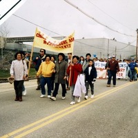 Members of the Chinese Progressive Association Workers' Center march in the International Paper Company strike