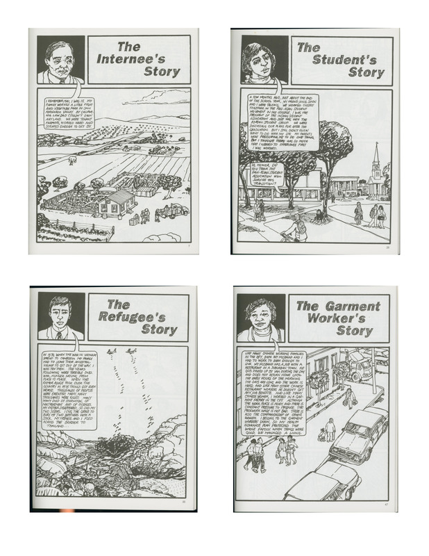 This is taken from the Asian American Comic Book that has four of the pages put together on one page for timeline viewing. This is altered from the original source because it displays four pages on one.