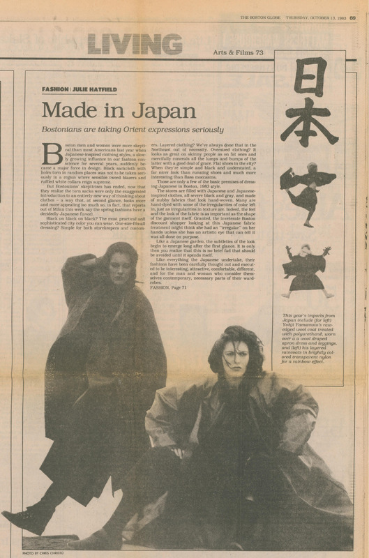 - A newspaper from The Boston Globe about Japanese fashion.