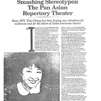 - Article profiling Tisa Chang and the Pan Asian Repertory Theater, discussing its mission, productions, and role in Asian American theater from the 1970s through the 1980s.